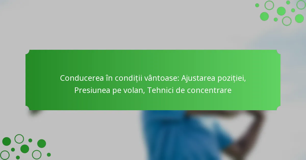 Conducerea în condiții de vânt necesită ajustări atente pentru a îmbunătăți controlul și stabilitatea. Prin modificarea poziției și a presiunii de prindere, poți îmbunătăți reacția la rafalele bruște, în timp ce tehnicile de concentrare pot ajuta la menținerea atenției și a conștientizării pe drum. Implementarea acestor strategii va asigura o experiență de conducere mai sigură în condiții meteorologice dificile.