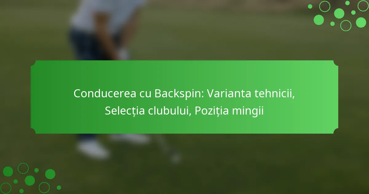 Conducerea cu backspin implică tehnici specifice care îmbunătățesc controlul și distanța. Stăpânirea acestor tehnici poate îmbunătăți semnificativ jocul tău, permițând o mai bună plasare a mingii și o putere de oprire pe green.