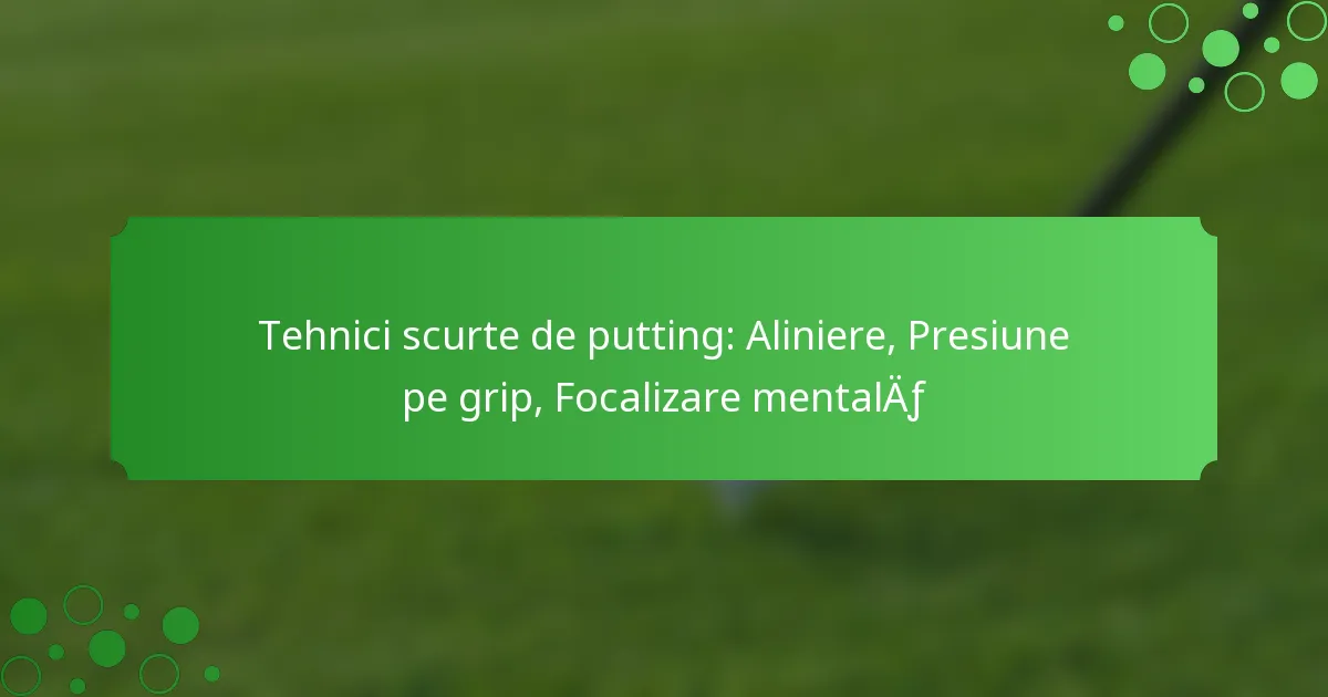 Tehnicile de putting scurt sunt esențiale pentru golferii care doresc să își îmbunătățească performanța pe teren, concentrându-se pe aliniere, presiunea pe grip și concentrarea mentală. Prin stăpânirea acestor componente, jucătorii își pot îmbunătăți acuratețea și consistența, conducând la rezultate generale mai bune. O aliniere corectă asigură că corpul și putterul sunt direcționate către țintă, în timp ce presiunea corectă pe grip permite o senzație și un control optim în timpul fiecărui putt.